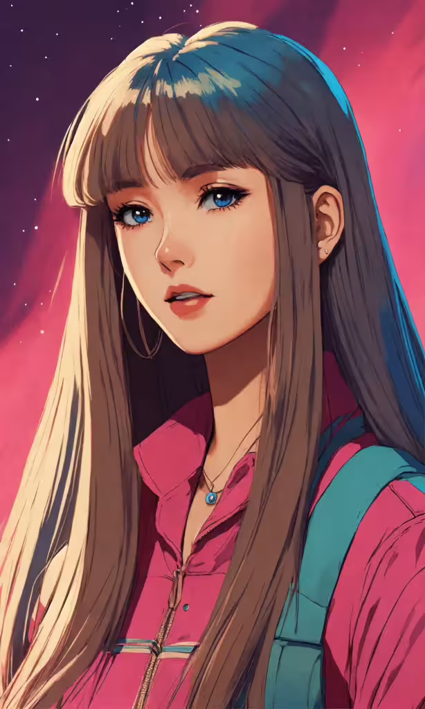 High resolution picture, free to use, a anime girl with long hair in a pink shirt
