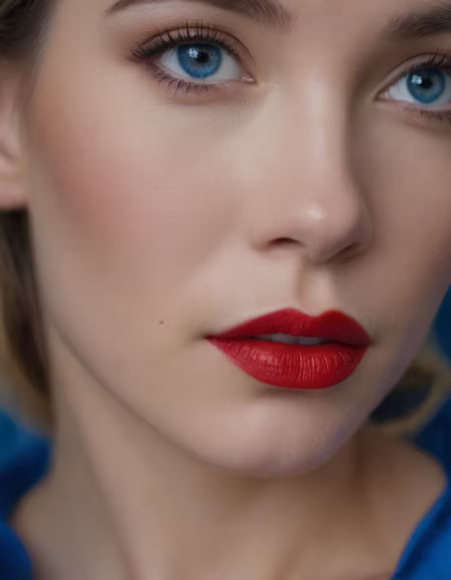 High resolution picture, free to use, a beautiful blond with blue eyes and red lipstick