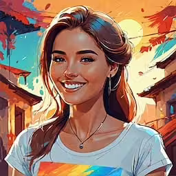 High resolution picture, free to use, a beautiful woman in a colorful shirt is smiling