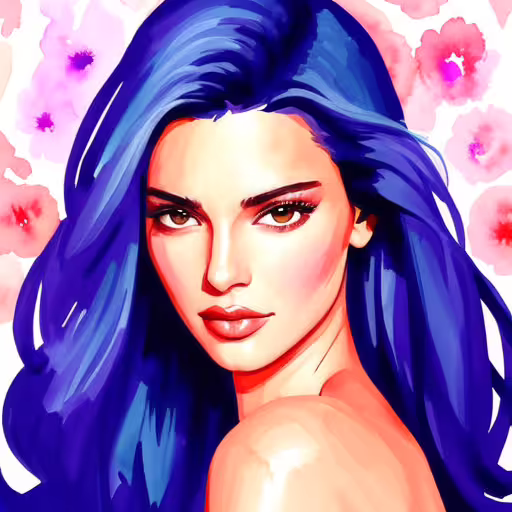 High resolution picture, free to use, a digital portrait of a beautiful young woman with blue hair