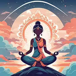High resolution picture, free to use, a drawing of a lady sitting on a mountain