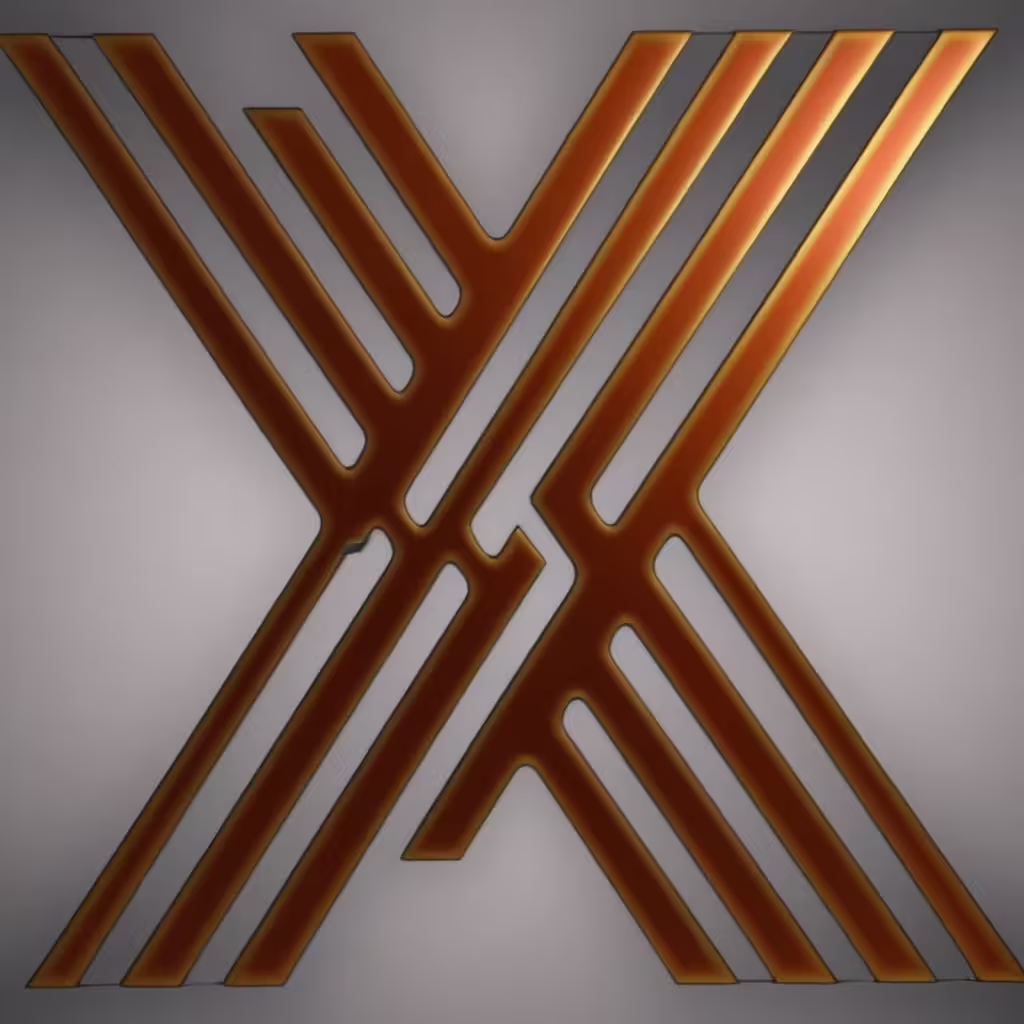 High resolution picture, free to use, a logo in 3d with a large orange x shaped