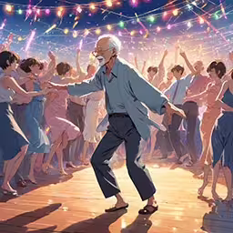 High resolution picture, free to use, a man in a crowd dance under some lights