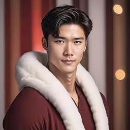 High resolution picture, free to use, a man wearing a fur collar in a brown sweater