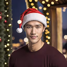 High resolution picture, free to use, a man with a santa claus hat and red top
