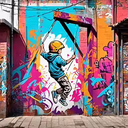 High resolution picture, free to use, a painting of a kid jumping while flying through the air