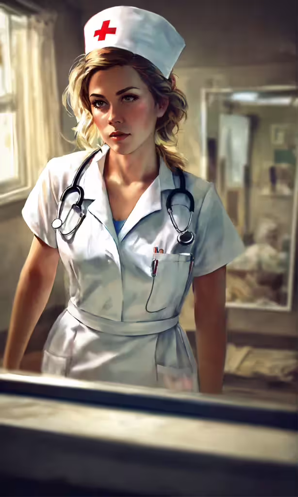 woman wearing scrub suit sitting on chair in hallway a person with a white lab coat sitting on a bed a person that is sitting down in a bed a girl in a hospital uniform sits on a bed a female nurse wearing a white uniform and red necklace a woman wearing a lab coat and glasses a beautiful woman in a scrub hat a young female medical professional dressed in scrubs a very cute little girl sitting on a bed a woman with a long ponytail standing next to a mirror an anime woman wearing a white nurse outfit a painting of a nurse in hospital room a woman wearing a white graduation hat looking angry a digital painting of a woman nurse smiling at the camera a young woman dressed in a nurse uniform in a hospital girl in a nurses outfit sitting on a bed the woman is in her hospital gown and sitting on the bed a nurse sitting in a hospital bed in the hospital a digital painting of the cartoon character nurse cartoon nurse in a hospital by nicki93 the cartoon character in nurse clothes holding a medical kit a girl with short hair sitting on a bed a woman in scrubs standing by a wall with lights an anime girl with long black hair and a sailor outfit a nurse is sitting on her bed while she sits the nurse sits on her bed in the hospital room a girl wearing a white nurse a nurse standing in a hospital corridor anime character in hospital scrub gown sitting down the cartoon character is a nurse who is standing in a hospital hallway anime girl sitting on a hospital bed with a stethoscope in her hand a very cute girl dressed up as a doctor a girl in a nurse the cartoon character nurse has been drawn for children the nurse in the hospital sitting on her bed this girl is sitting on the bed wearing an oxygen cross shirt a painting of a woman in a nurses uniform a sexy nurse sitting on a bed wearing a white uniform a nurse is sitting on her bed looking sad a beautiful blonde woman sitting on top of a bed a woman nurse standing in a hallway smiling for the camera nurse looking down at a counter as she stands next to the sink the medical woman is dressed in the surgical scrubs a girl in white sailor a woman doctor with her arms folded on a hospital bed a woman nurse posing for the camera in her uniform a blond haired woman wearing a white shirt and a blue collar a nurse standing in front of a wall the girl is dressed up as a nurse a painting of a nurse looking out the window an animated character of a woman in medical scrubs and scrub pads with her doctor a woman is standing by the mirror, looking at her reflection in the mirror a woman in uniform with some kind of hat a nurse sitting on her bed in front of a light a female in nurse outfit sitting on a hospital bed the nurse poses with a pot of flowers in front of a window the female doctors office worker is posing for a portrait cartoon girl in uniform standing next to luggage and helmet a young woman wearing a green scrub top stands at a window the hospital girl is preparing to take care of her son a cartooned woman with her hand on her hips a cartoon nurse is posing in a hospital room a 3d painting of a nurse in bed an anime nurse sitting on a bed in a hospital a girl in white doctor an anime nurse sits on her bed in her hospital room an anime nurse is sitting in a hospital bed a girl with a hospital uniform on and holding a paper a nurse is standing outside of a window an anime girl sitting on a bed wearing white stockings a woman in nurse uniform sitting on a bed the young nurse is sitting down wearing a green uniform a nurse standing in the hallway in front of the camera the animated character is a nurse in scrubs a very pretty anime girl with nurse uniform a woman with a doctor coat and stethoscope standing up an advert for a nursing office featuring a woman nurse a painting of a nurse sitting on a hospital bed a young female surgeon standing with a stethoscope on her head a woman sitting down wearing a scrub outfit a mannequin head with a cap on it a cartoon image of a female doctor sitting on a bed the woman is standing with her stethoscope on a woman in scrubs standing by a plant a woman in scrubs smiles and arms crossed a woman in a nurse uniform sitting on a hospital bed a young nurse looks into the camera an animated medical professional character from disney a nurse standing in a room holding a stethoscope a girl in a nurse outfit standing near a table with medical equipment a girl with long hair and short skirt in bed a woman with a medical scrub on her head and the words nurse written on the side of her shirt a woman nurse standing behind a door young woman in scrubs standing outside a building a chinese nurse sits in front of her flowers the nurse is sitting on her bed the woman is sitting on the hospital bed wearing a doctors uniform a cartoon woman in scrubs holding a nurse a painting of a woman with a stethoscope on
