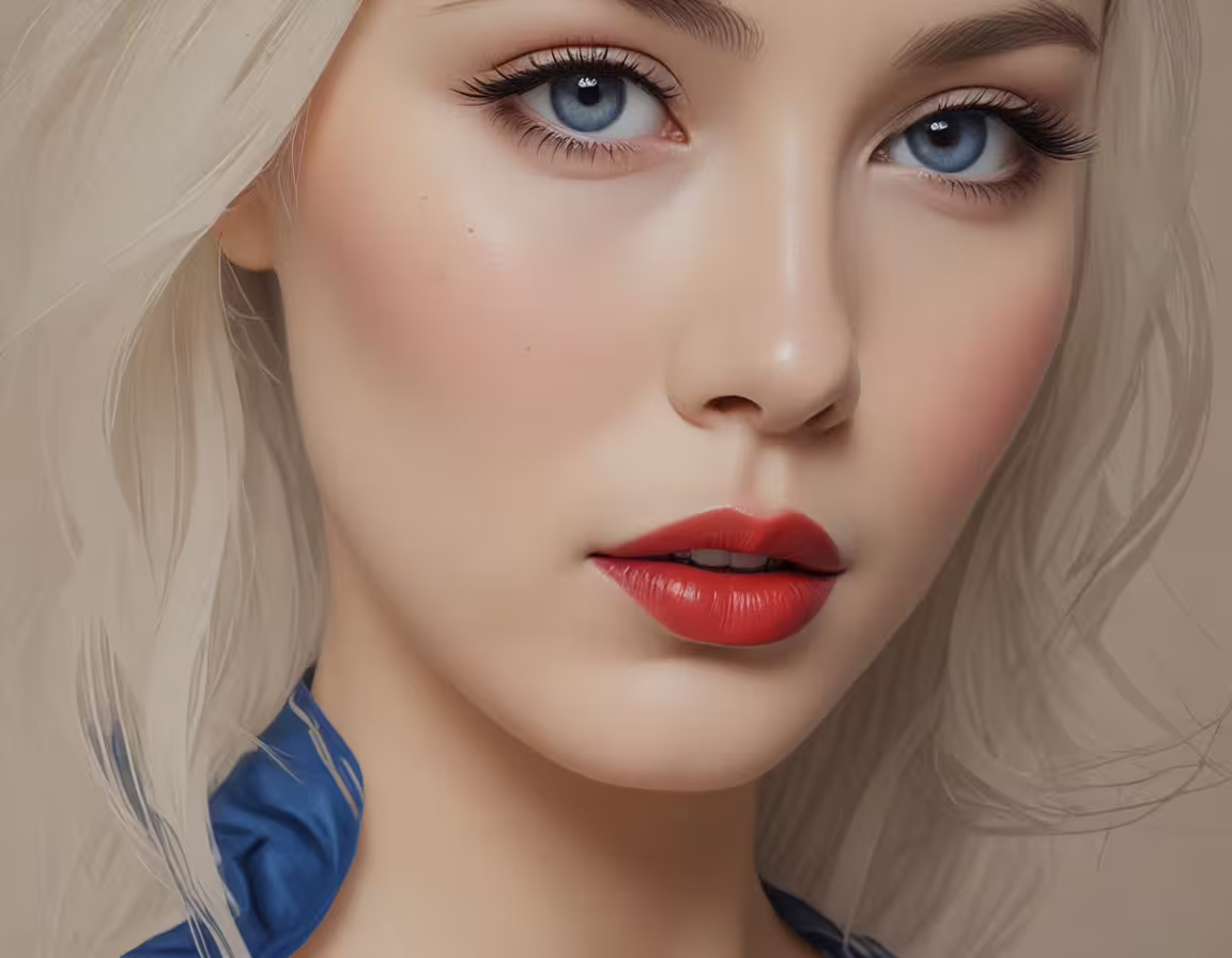 High resolution picture, free to use, a painting of a woman with red lipstick