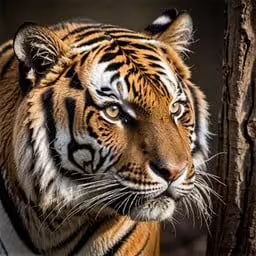 High resolution picture, free to use, a tiger walks by a tree in a zoo