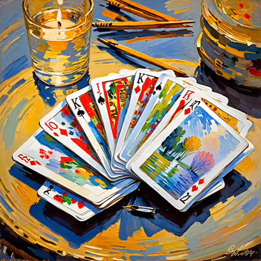 High resolution picture, free to use, a tray with four cards, a candle and three brushes
