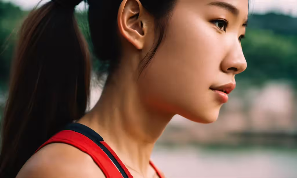 High resolution picture, free to use, a woman has her hair pulled back into a ponytail