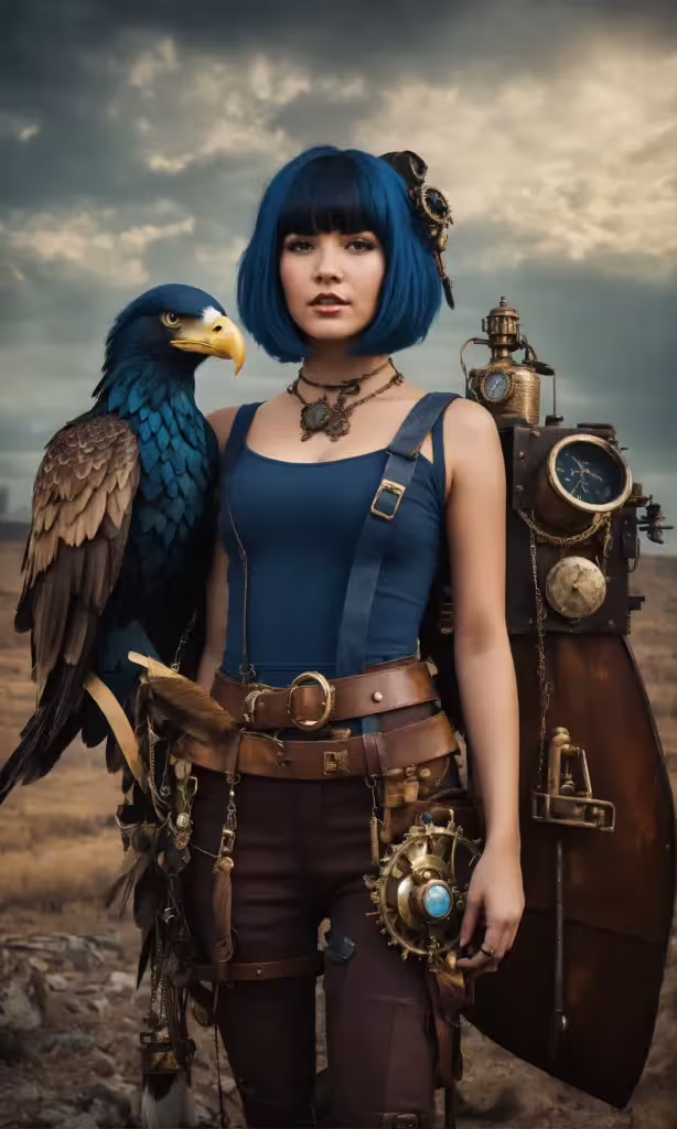 High resolution picture, free to use, a woman in an eagle outfit holding a large bird