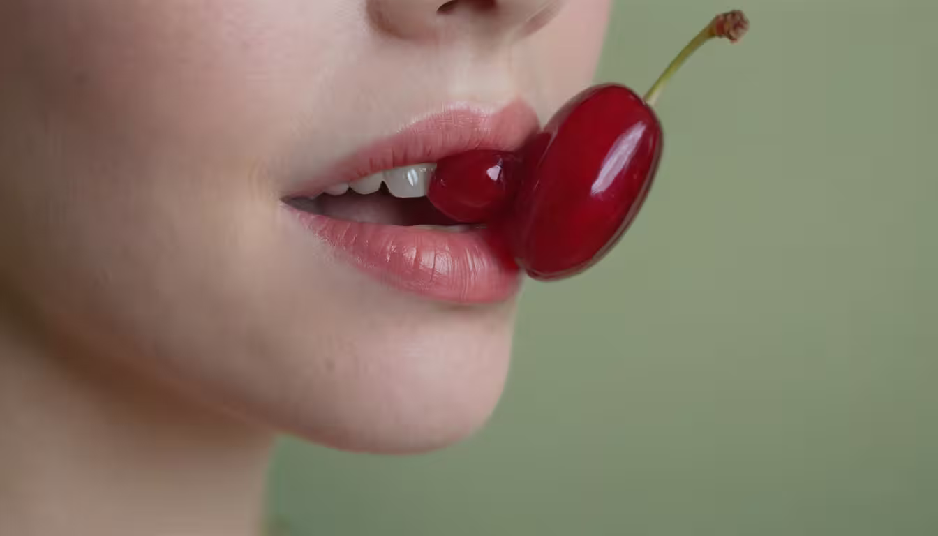 High resolution picture, free to use, a woman with a cherry in her mouth