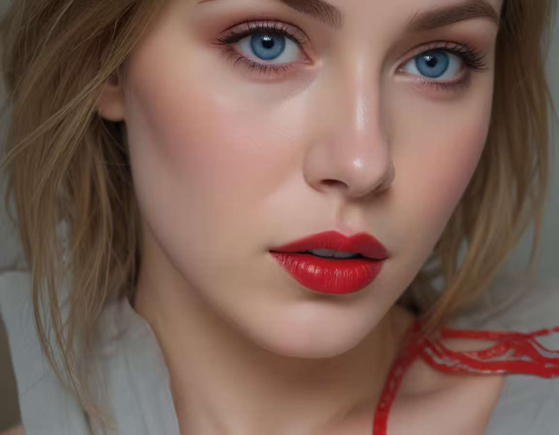 High resolution picture, free to use, a woman with blue eyes and red lipstick