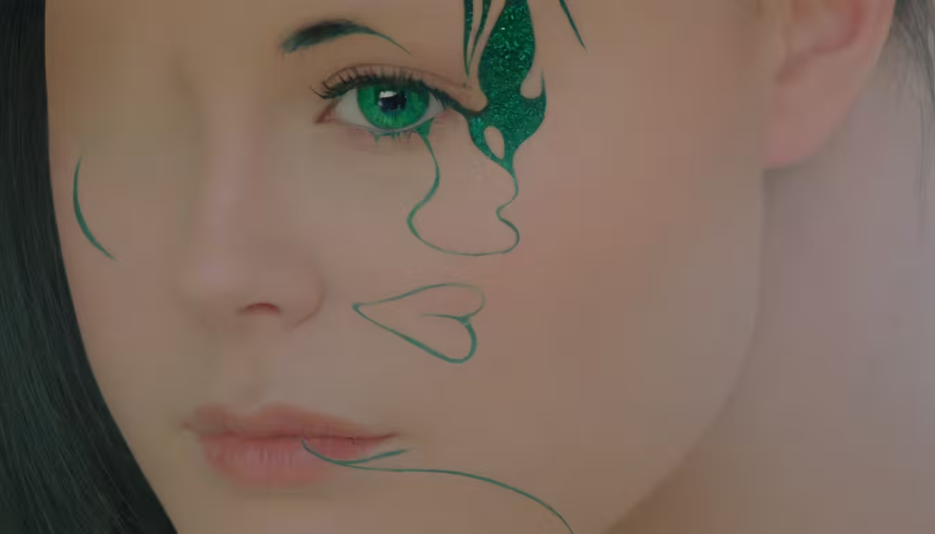 High resolution picture, free to use, a woman with green eyeliners posing for a photograph