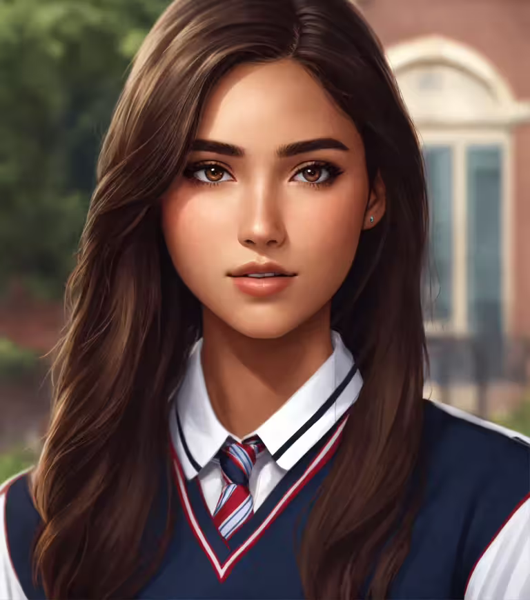 High resolution picture, free to use, a young girl in uniform and with long hair