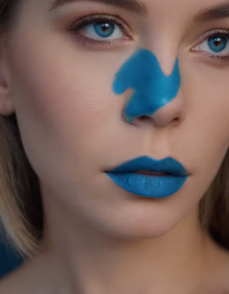 High resolution picture, free to use, a young woman is covered with blue makeup