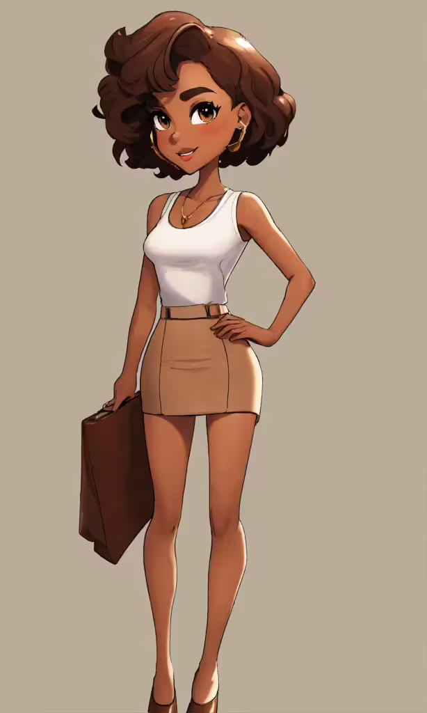 High resolution picture, free to use, an animated black woman wearing a white top and tan skirt