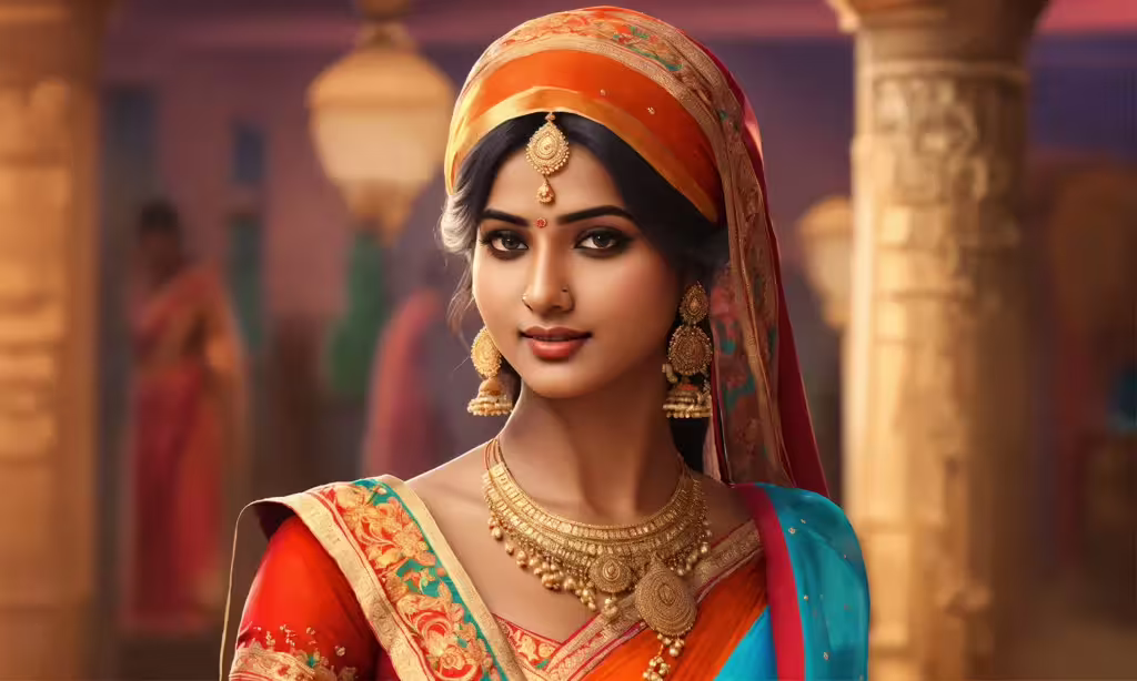 High resolution picture, free to use, an animated image of a woman in a traditional outfit