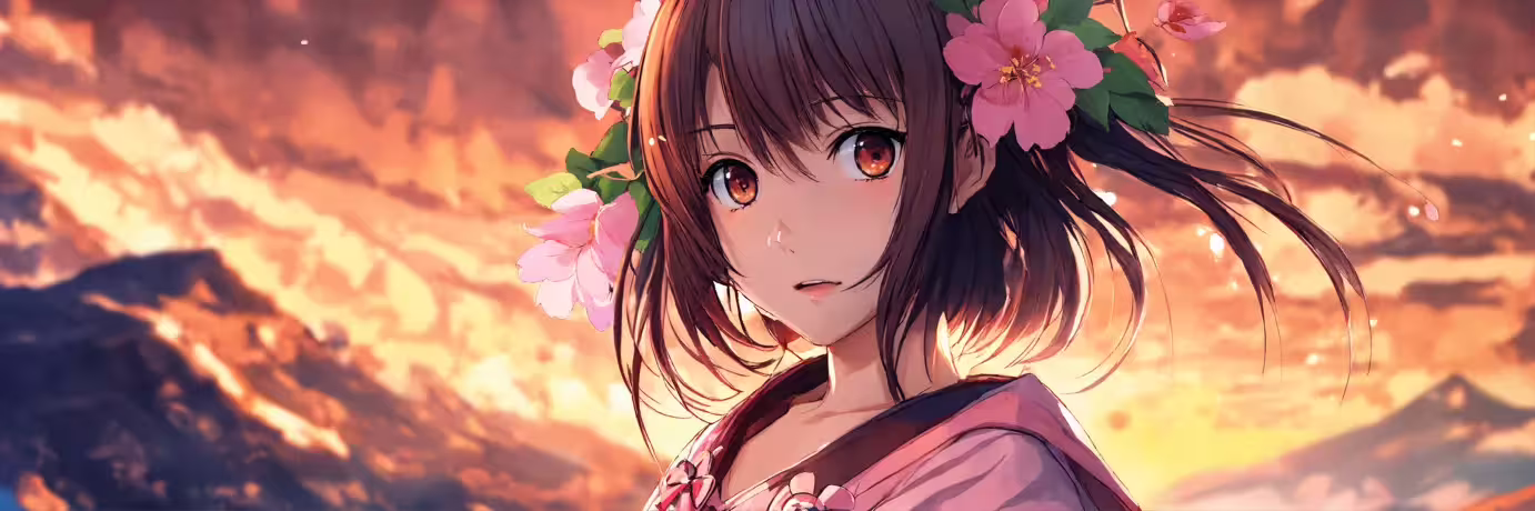 High resolution picture, free to use, an anime girl with large ears wearing a flower crown