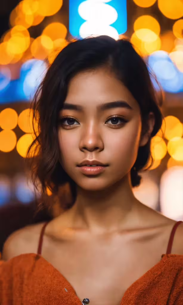 High resolution picture, free to use, an asian woman is posing in front of lights