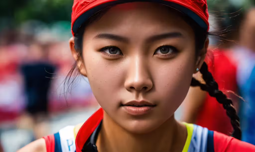 High resolution picture, free to use, an asian woman wearing a headband is at the running event