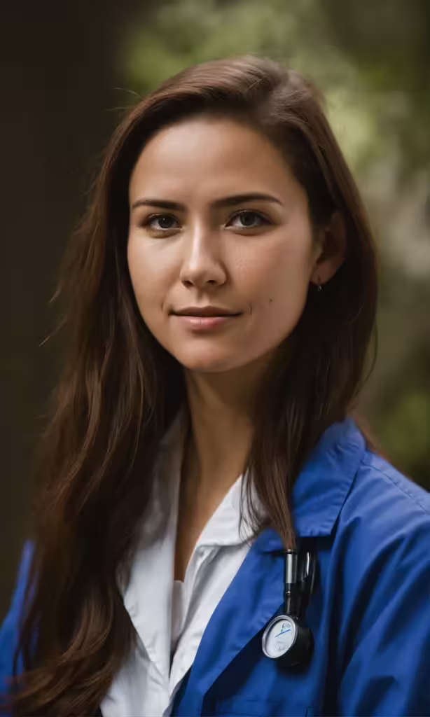 High resolution picture, free to use, an attractive young doctor posing in a blue coat