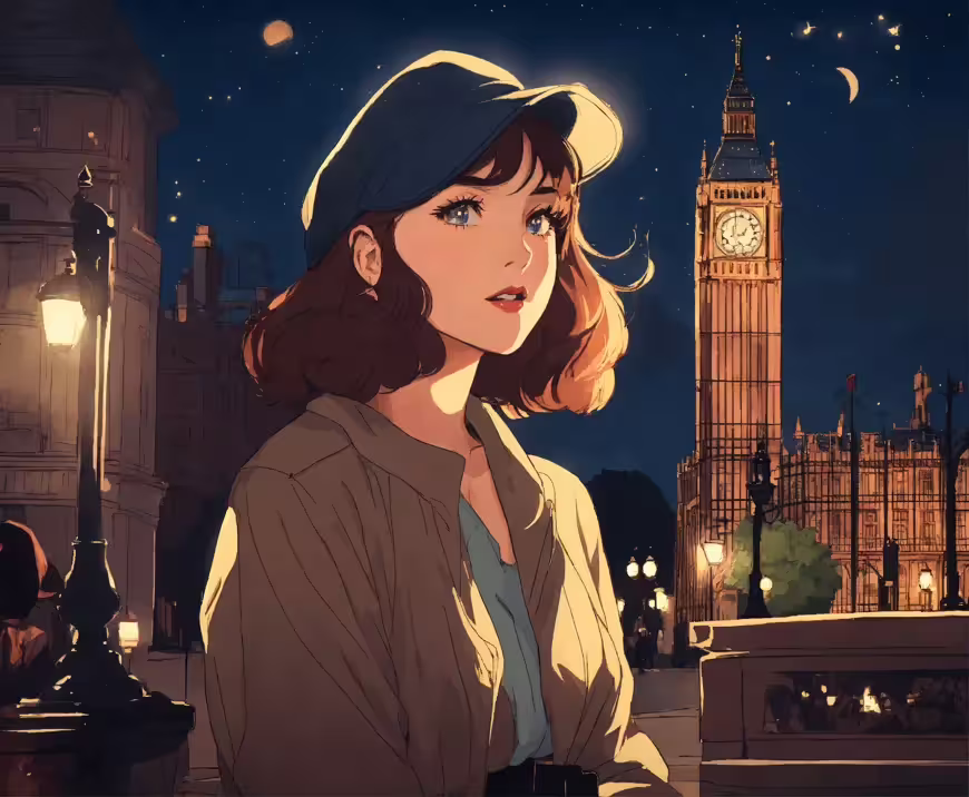 High resolution picture, free to use, the anime girl with big ben in the background