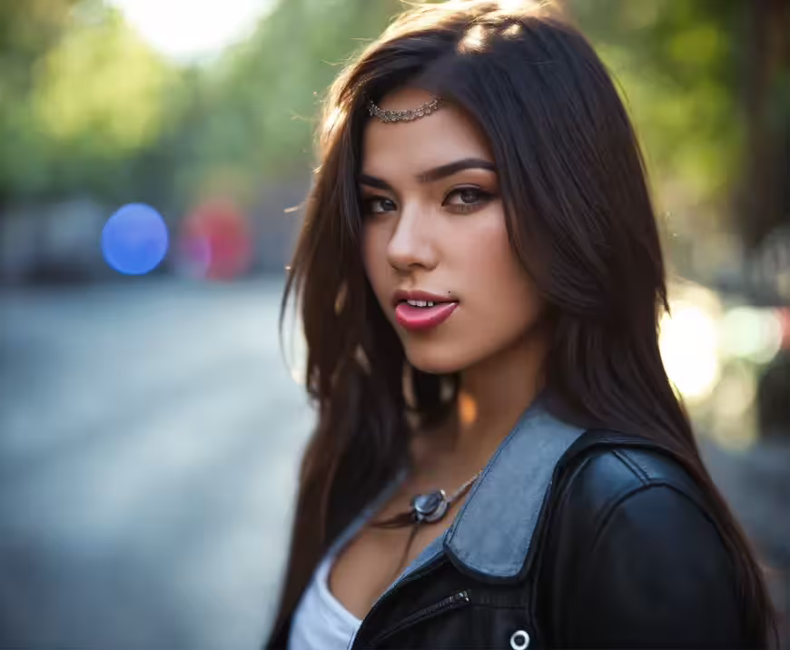 High resolution picture, free to use, the woman is posing on the sidewalk in her jacket