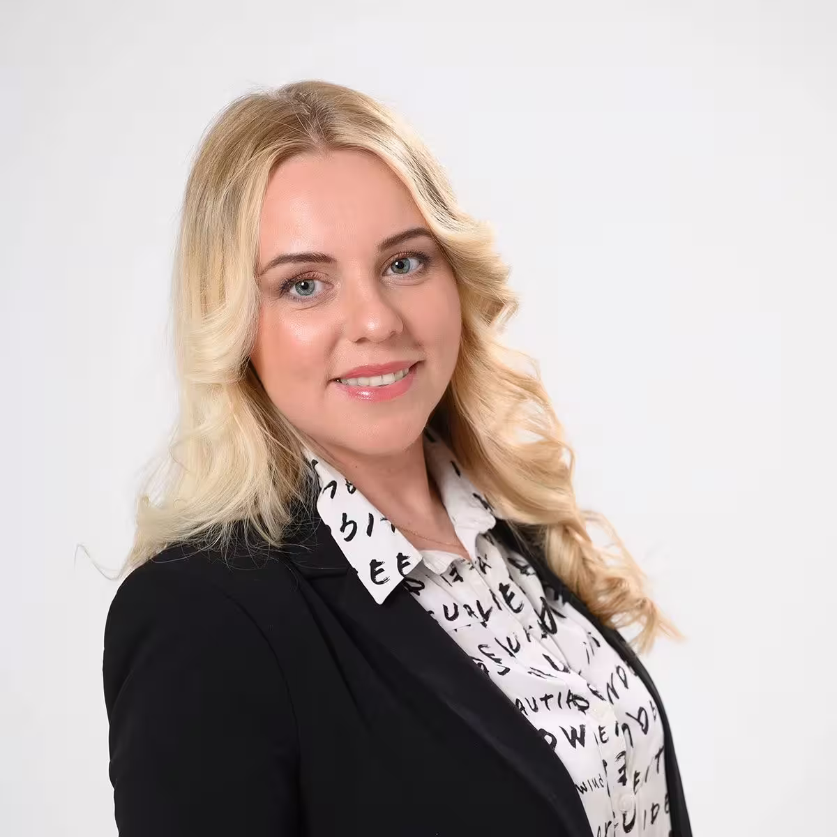High resolution picture, free to use, the woman smiles for the camera while she stands in a business suit