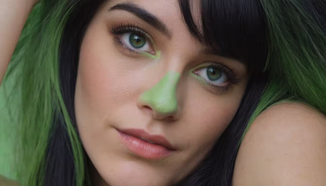 High resolution picture, free to use, woman with green hair and fake nose makeup