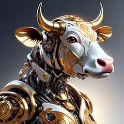 High resolution picture, free to use, a computer generated image of a cow with gold horns