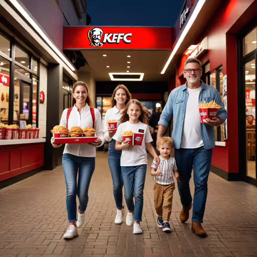 High resolution picture, free to use, a family walks down the sidewalk with a tray of fries