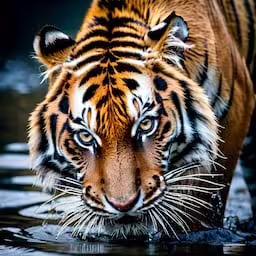 High resolution picture, free to use, a large tiger walking across water covered in water