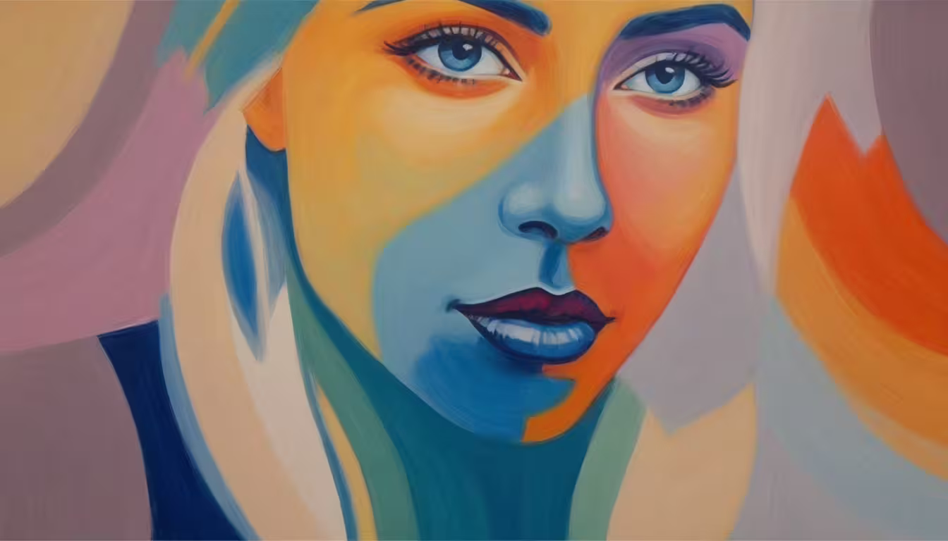 High resolution picture, free to use, a painting of a woman with blue eyes and hair