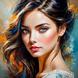 High resolution picture, free to use, a painting of a woman with blue eyes