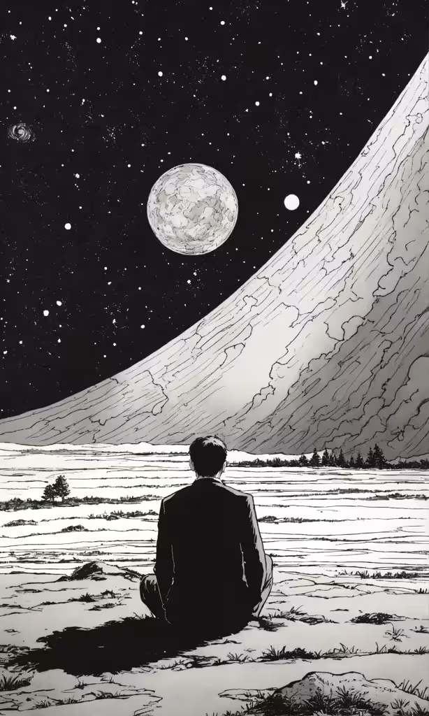 High resolution picture, free to use, a person sitting in the snow watching the sky