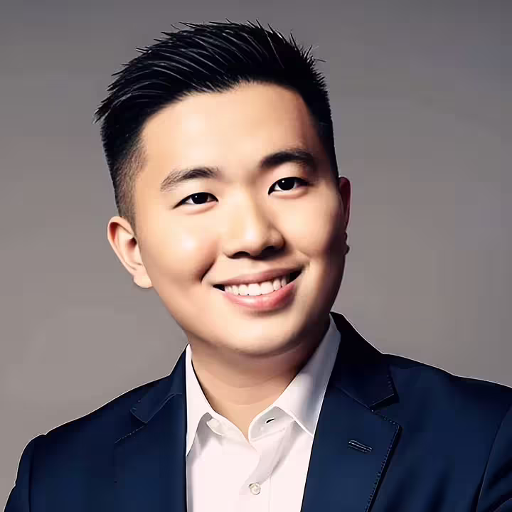 High resolution picture, free to use, a smiling asian man in a blue suit jacket