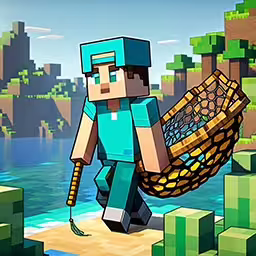 High resolution picture, free to use, a stylized image of a mineo holding a net