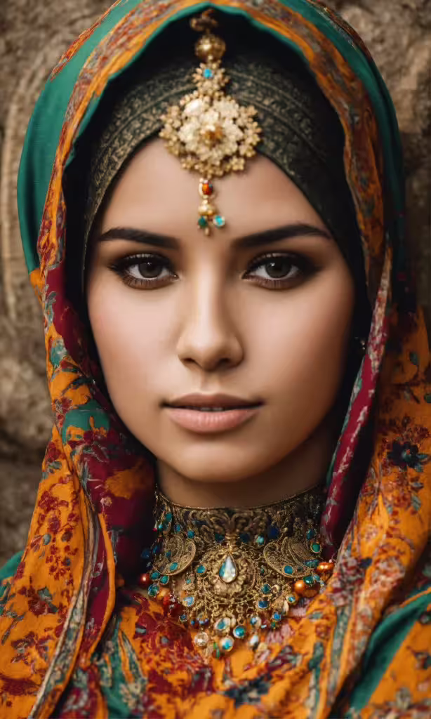 High resolution picture, free to use, a woman in an ethnic dress wearing head jewelry