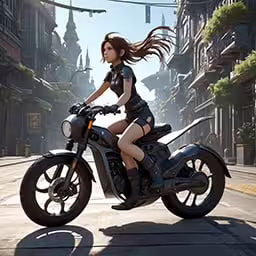 High resolution picture, free to use, a woman is riding on a motorcycle down the street