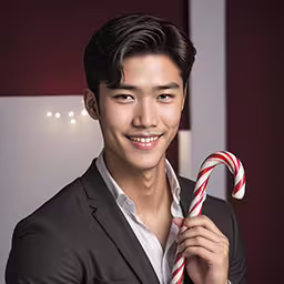High resolution picture, free to use, an asian male holding a candy cane