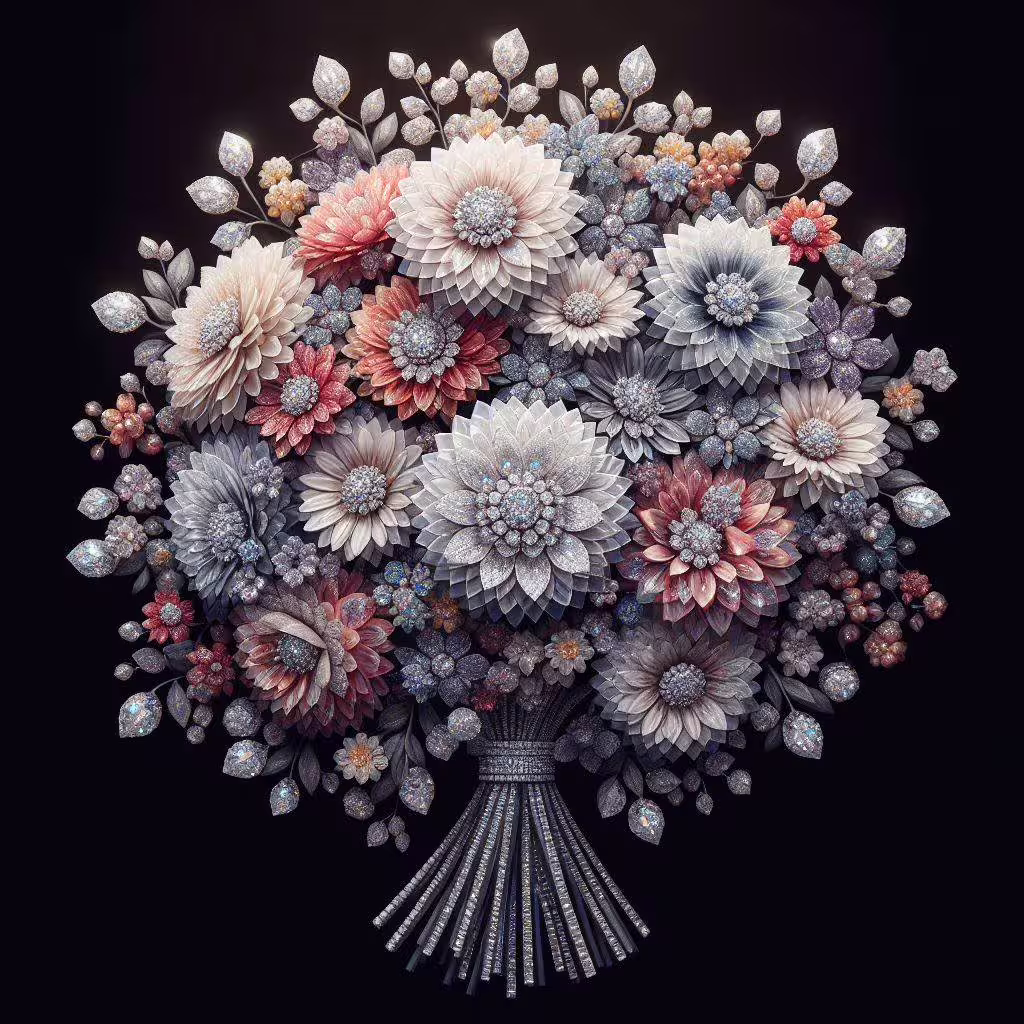 High resolution picture, free to use, an elaborate bouquet with lots of white, blue and pink flowers