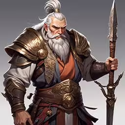 High resolution picture, free to use, an older man with long white hair holding a spear