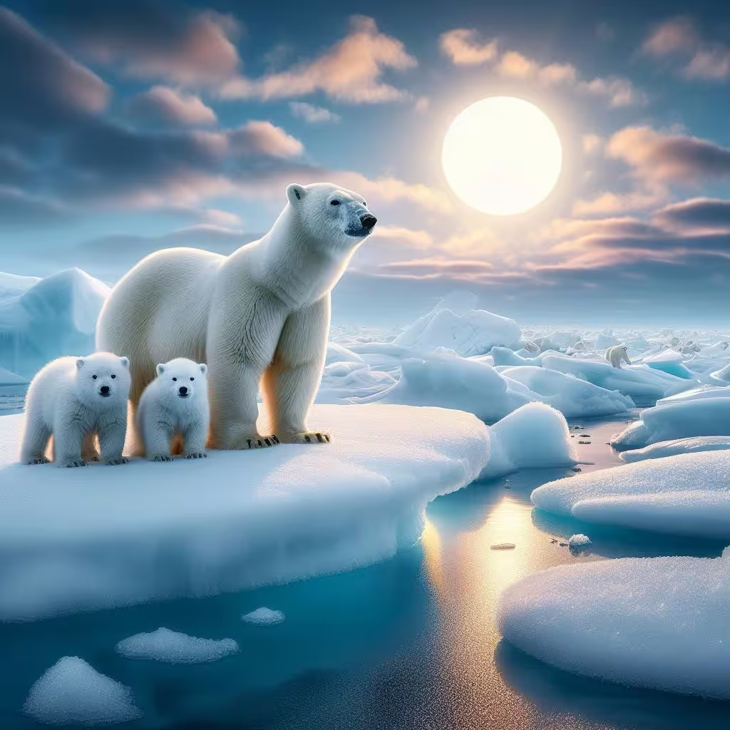High resolution picture, free to use, polar bears in the wild looking at the moon