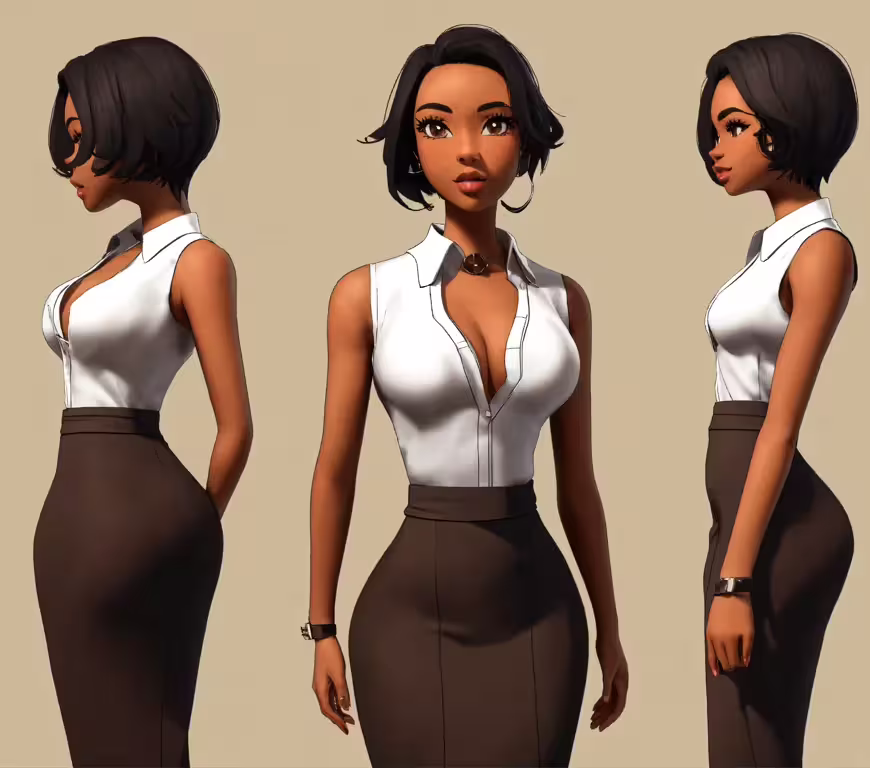 fashion illustration of a women in a green jacket with a white dress holding shopping bags a woman standing in front of a green wall a woman standing with a hand on her hip and looking off into the distance a very realistic looking girl with long blonde hair a woman stands in a dimly lit office an african american woman wearing a purple dress and holding a gold purse a rendering of a woman at an office a young lady is wearing a purple dress a woman posing for the camera in an office with her hand on her hip a woman in a red dress with an extravagant belt the woman is wearing a blue suit and holding a black purse a woman in purple poses with a purse in front of her a woman is standing on a hard wood floor a painting of a woman in an african - american style dress a woman in short skirt and white shirt poses for a picture a woman in a dress poses for the camera a woman in a brown dress holding a file an animated drawing of a woman in pink a woman wearing a short black dress walks on the floor an african american woman is smiling and posing a woman in a black dress standing at a desk and a lady in a blue dress an attractive woman with a very large breast posing in front of a desk a woman with orange hair and black dress standing in a building a woman in a white suit and heels walking towards the camera a business woman walking down a hallway the woman in a dress is sitting on a couch an artwork of a woman in a dress the woman is wearing a skirt while standing in front of the desk some girl in pencil skirt clothing poses for the camera three cartoon female office workers with short hair a woman in a light pink dress poses an african american woman dressed in blue walking through the streets a woman standing on a brick street wearing a pink dress a model is wearing an office outfit, but the background is blurred a beautiful woman wearing a black dress in a suit office a painting of a woman in a yellow suit the doll is standing on a pedestal outside a woman is standing on a sidewalk with her legs crossed an art work that depicts a beautiful woman with a handbag a woman is holding a black handbag digital painting of a lady in dress with large earrings an animated painting of a woman standing in a suit a woman in a dress with glasses standing by a mirror a woman with a suitcase is standing in a train station an african american woman with black hair and white dress standing in front of a grey background a cartoon of a woman in a blue dress portrait of a woman in an elegant dress with a bright necklace a woman in a green suit and heels, with her hand on her hip a rendering of a woman in purple dress the character is posing with a very high waist dress a woman wearing shorts and a shirt a woman in a green and white dress with a clutch an asian woman in pink is sitting down on some steps woman in leather outfit standing by a desk in a dark room a 3d character wearing purple clothes holding a handbag and a purse a woman is standing in front of a green background a women in a purple dress on a purple background a woman in a suit sits at a desk next to a lamp five women in different outfits standing against a wall a woman with curly hair standing next to a book a woman in a white shirt and maroon skirt walks down a long corridor with a folder a woman in a business dress smiling an old woman standing with her hand on her hips an oil painting of a woman with sunglasses on her face the woman in the blue dress is posing an illustration of a woman sitting on a chair in a living room various poses of a woman with short, dark hair wearing a dress a woman standing in front of an airplane holding a suitcase a female professional bodybuilding athlete posing for the camera a woman wearing a suit and tie is standing in a room an artist the woman is dressed in a dress with open sides a painting of a woman sitting on top of a chair a girl in short dress and heels with her hair in the air black women with afro hair posing for a photo a woman posing in a skirt, blouse, and jacket a woman in white holding a pink purse the girl in the skirt is wearing a shirt and heels a woman wearing a white dress with a slited skirt and high heels a woman is walking on the runway at the fashion show a woman in blue wearing a long jacket an old time lady sitting at a table in a blue dress woman in black suit holding a white tablet three models for an animation film show with different poses the girl a very attractive woman in a nice suit two women in business attire are looking at something an animated woman posing with her hands on her hips woman in leather outfit sitting at desk wearing eyeglasses an oil painting of a woman in a tan suit an artisticly drawn portrait of a woman holding a purple handbag and purse a digital painting of an afro american woman with dark hair and dressed in a turquoise suit painting of a woman wearing a green and white suit a painting of a beautiful young woman dressed in black clothing a futuristic woman standing at a desk in an office a painting of a woman in business attire at an office desk woman in dress posing in front of white board in room a woman in purple is standing with a purse a woman stands in a suit at a table