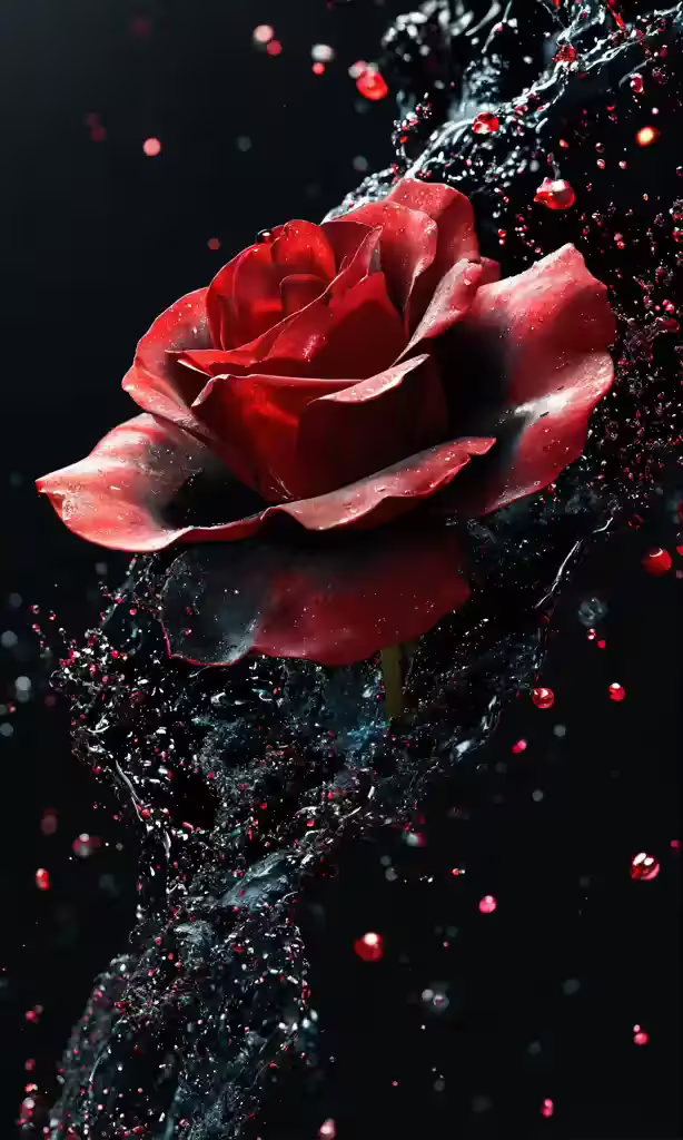 High resolution picture, free to use, water splashing on a red flower with droplets